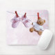 Babydusche für Mädchen, Teddybären und Schnuller am rosa Hintergrund