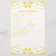Diese geschlechtsneutrale Baby Shower Predications and Advice Game Card zeigt ein gelbes papel picado Design, das traditionelle mexikanische Kunst mit einer modernen Touch verbindet. Die sanfte, gelb-weiße Farbpalette wird durch detaillierte Blumenelemente unterstrichen, die elegante Blume, Blätter und Polka-Punkte mit einem lebendigen, weißen Hintergrund vereinen.