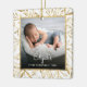 Feiern Sie das erste Weihnachtsfest des Babys mit diesem schönen Sake-Ornament. Ersetzen Sie das Beispielbild einfach durch Ihr eigenes Lieblings-Foto und passen Sie es mit dem Namen des Babys im Schriftart mit weißem Skript und dem Jahr unten an. Ein Schwarzer Farbverlaufsbildschirm hilft, den Pop des Textes zu erzeugen. Das Foto wird von einem eleganten quadratischen Rahmen abgerundet, der mit handgezeichnet Blattgold aus Imitat auf weißem Hintergrund verziert ist.