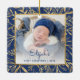 Feiern Sie das erste Weihnachtsfest des Babys mit diesem schönen Sake-Ornament. Ersetzen Sie das Beispielbild einfach mit Ihrem eigenen Lieblings-Foto und passen Sie es mit dem Namen des Babys in navy-blue script Schriftart und dem Jahr unten an. Ein Bildschirm mit weißem Farbverlauf trägt dazu bei, den Pop des Textes zu erzeugen. Das Foto wird von einem eleganten quadratischen Rahmen abgerundet, der mit handgezeichnet Blattgold aus Imitat auf einem marineblauen Hintergrund verziert ist.