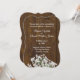 Rustikal schicke Hochzeitsdinner Probe Einladung in einem dunklen Holzlook mit Grafiken von weißen Baby's Atem Blume, am unteren Rand. Personalisieren Sie den gesamten Text, um Ihre Bedürfnisse zu Anzug.