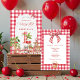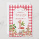 This charming invitation is perfect for celebrating a baby's first birthday! The design features a sweet cherry motif on a classic red gingham pattern, creating a delightful and festive look for your child's special day. It's a delightful way to invite family and friends to share in the joy of this milestone event.