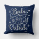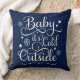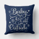 Baby's Cold Outdoor Navy Blue Script Holiday Kissen