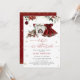 The Baby it's Cold Outside Christmas Baby Shower Invitation ist ein reizendes und festliches Fest Thema, das den Zauber der Weihnachtszeit mit der Freude an der Aufnahme eines kleinen Mädchen verbindet. Im Mittelpunkt des Designs steht ein hübsches Bordeaux-Kleid, das ein gemütliches Urlaubsatmotiv ausstrahlt. Das Kleid ist wunderschön mit winterlichen Blume geschmückt, die eine Touch von saisonaler Eleganz und dem winterlichen Charme der Natur schaffen. Andere weihnachtlich inspirierte Elemente wie umhüllte Geschenke, Schneeflocken und Ornamente umgeben die Szene und schaffen so ein fröhliches und festliches Ambiente. Matching-Elemente verfügbar.