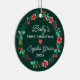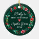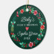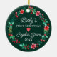 Feiern Sie Ihre Babys zu ersten Weihnachten mit einem Weihnachtsschmuck. Dieses Design zeichnet sich durch einen Aquarellkranz mit Heiligem, Beeren und viel Winterwald in den traditionellen Rot- und Grüntönen aus. Passen Sie alle Details in diesem Design an. Sehen Sie sich die gesamte passende Auflistung an.