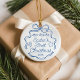 Babys First Christmas Blue Ribbon Whimsical Doodle Keramik Ornament