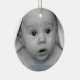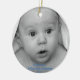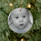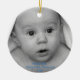 Vollständig angepasste Weihnachtsschmuck mit einem Foto von Babyjungen, 3 Zeilen für Name, Nachricht und Jahr.