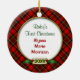 Adorable runde Keramik Baby's First Weihnachtsmassage Foto Rahmen-Ornament. Die Vorderseite hat einen Platz für Ihr eigenes hochgeladenes Foto und das Jahr, während die Rückseite für Sie bereit ist, um mit dem Namen und Jahr des Babys zu personalisieren. Das Geschenk ist perfekt für Großeltern und wird Jahr für Jahr ein geschätzter Sake sein.