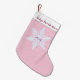 This holiday Christmas stocking is shown in a Baby's First Christmas 2025 snowflake print.