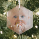 Mit dieser eleganten, modernen und einfachen Vorlage aus Polygon-Glasschmuck kreieren Sie Ihr eigenes personalisiertes Foto und Drehbuch. Fügen Sie einfach Ihre Fotos und Text hinzu. Machen Sie sich Ihr eigenes Baby's First Christmas Minimalistisch Foto Glass Ornament