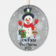 Ein skurriler Weihnachtsbaumschmuck mit einem bezaubernden Schneemann umgeben von zarten Schneeflocken. Passen Sie es mit dem Namen Ihres Kindes und dem Jahr für eine personalisierte Touch an, die die Freude der Saison erweckt. Verwenden Sie die Schaltfläche "Personalisieren", um Ihre Wünsche anzupassen.