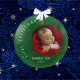 Splatter pattern My First Christmas Baby Photo Ornament is a stylish modern holiday ornament with baby's name featured in fun typography in white over your photograph. First Christmas, Sample Name, add the year. New for 2025.