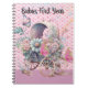 Babys im ersten Jahr Notebook mit Carriage, Blume und Polka Punkte. Dank Creative Fabrica für einige der Elemente in der Gestaltung.