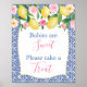 Aquarellfarbene Zitronen und mit rosa Rosen und Pionieren vor einem Hintergrund von Kobaltblau und Weiß Fliesen für diese stilvolle Party-Signage. Ich habe das für eine Babydusche Set, aber natürlich sind alle Felder auf Ihre Bedürfnisse zugeschnitten. Sie können Textfelder löschen oder hinzufügen, indem Sie das Entwurfstool eingeben (klicken Sie, um weitere Anpassungen unter den Textanpassungsfeldern vorzunehmen).