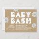 Baby Bash - Baby Dusche Einladung. Blue Boy Baby mit Blume über Kraftpapier Hintergrund.
