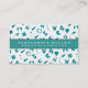 Die moderne Visitenkarte zeichnet sich durch ein trendig türkisfarbenes Babysitter-Muster auf weißem Hintergrund aus. Ein lustiges und skurriles Muster von Babyflaschen, Babyflaschen, Schnullern, Kinderrollen, Teddybären und mehr. Individuelle Name und Titel oder Rolle auf einem türkisfarbenen Banner mit weißem Text und Akzenten präsentiert. Die Rückseite der Karte ist schlicht und einfach, mit der Koordination von weißem Text auf einem schlicht türkisfarbenen Hintergrund. Diese stilvolle Babysitter-Visitenkarte mit einem individuelle Name auf der Vorderseite in moderner Typografie ist mit individuellem Text und einem Fliesenbild gestaltet. Kontaktinformationen finden Sie auf der Rückseite. Sie können Ihren Text anpassen, indem Sie ihn mit den angegebenen Feldern ändern oder indem Sie das Bild ersetzen, oder indem Sie die Schaltfläche "Diesen Designer kontaktieren" verwenden, um Hilfe zu erhalten. So erstellen Sie Ihre eigenen stilvollen Visitenkarten: 1. Wählen Sie diese Vorlage aus. 2. Ersetzen Sie den Text. 3. Ersetzen Sie Bild 1 (Vorlagenbild ist gekachelt; das Bild wird automatisch gekachelt). 4. Überprüfen Sie Ihr Bild auf Größe und Position. Moderne Business-Karten mit Babymotiven eignen sich ideal für Babysitter, Kindermädchen, Kinderbetreuer oder berufliche Kinderbetreuung.