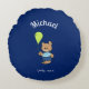 Rundkissen mit niedlichem Babybär mit Party-Ballon auf dunkelblauem Hintergrund