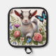Babyziege mit bunten Schmetterlingen und Blume Topflappen