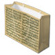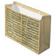 Ausgedehnte Auszüge von den ersten zwei Seiten des Manuskriptes des Chaconne für Violinensolo, durch J.S. Bach, werden auf der Front und der Rückseite dieser Geschenktasche in ihrer ganzer kalligraphischen Eleganz angezeigt.