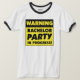Funny Bachelor Party T - Shirt für Bräutigam, Trauzeuge, Groomsan, und alle Typ. Das Design wirft ein Warnschild aus und lautet: "Warnung, Bachelor Party in Progress". Kann personalisiert sein.