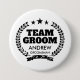 Bachelor-Party-Buttons für Trauzeuge im Team Groom. Vintages Lorbeerdesign im Wappen.