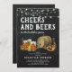 Rustikale Bachelor-Party-Einladungen mit Chalkboard-Effekt-Hintergrund, einer Auswahl an Aquarellbieren, Brezel und einem Bierfass, Saitenleuchten und einem modernen, leicht zu personalisierenden "Juers and Biervorlage"-Party.