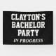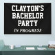 Die ultimative Feier mit unserem Bachelor Party In Progress Banner ankündigen. Passen Sie es mit dem Namen des künftigen Bräutigams an. Lass allen, dass das Party eingeschaltet ist, und mach dich bereit für eine lustige Nacht. Bestellen Sie noch heute unser personalisiertes Banner und machen Sie den Bachelor der letzten Nacht zum besonderen Erlebnis!
