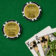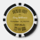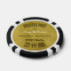 Einzigartige Bachelor-Party-Einladung auf einem Poker-Chip. Ein goldfarbener Hintergrund auf dem schwarz-weiß gestreiften Poker-Chip, mit schwarz-weißem, benutzerdefiniertem Text, der für Ihre Veranstaltung personalisiert werden kann. Ein guter Weg, um die Gäste zu Ihrem besonderen Tag einzuladen.
