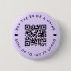 Ein einfaches, benutzerdefiniertes Lavendelpadel lila "Buy the Bride a Drink" Junggeselinnen-Abschied QR Code Rundtasten Button in einem modernen minimalistischen Stil mit einem niedlichen Herzstück Detail. Die Vorlage kann leicht aktualisiert werden mit Ihrem QR-Code und benutzerdefinierten Text, z.B. scannen QR zu zahlen von Venmo. #bachelorette #buythebrideadrink #QRcode
