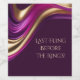 Enhance Your Last Fling with Artistic Flair with these Modern Wine Bottle Labels, featuring captivating Purple, Pink and Gold design with the message "Last Fling Before the Rings!" Order these unique wine labels today and make your event memorable with artistic flair and sophistication.