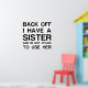 BACK OFF I HAVE A SISTER POSTER