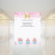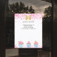 Personalisieren und fügen Sie Ihr Firmenlogo, Ihren Namen, Ihre Adresse, Ihren Text. Weißer Boden mit rosa Konfetti und Kuchen.
