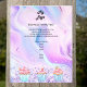 Personalisieren und fügen Sie Ihr Firmenlogo, Ihren Namen, Ihre Adresse, Ihren Text. Rosa, lila, blauer pastellfarbener holografischer Untergrund mit Konfetti und Kuchen.
