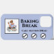 Moderne Darstellung der Frau in weißem Rahmen auf pastellblauem Hintergrund, eine Pause vom Backen. Sie genießt ein Glas Wein mit ihrem Kochbuch am Knie und den Brotkrümeln auf ihrem Handy. Ihre Kätzin hat auch eine schöne Zeit zum Entspannen. "Backbreak" geschrieben in fett schwarzen Schriftart über einer Checkliste aller Backen, die sie abgeschlossen hat: Kuchen, Muffins und Brot. Sie verdient bestimmt eine Pause! Sie können den ganzen Text ändern.