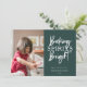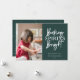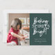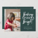 Moderne, weiße Typografie, "Backbrillenbrunnen", Foto-Urlaubskarte in festlicher Jägergrün. Die Rückseite der Karte weist ein weißes Spritzer-Muster auf, das dem grünen Hintergrund entspricht.