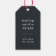 Stilvoll modernes Backgeschenk-Tag mit einem klassischen Typografie Zitat "Backspirits hell" mit einer Trennlinie und Familienname in Weiß. Das Design zeichnet sich durch eine bläuliche schwarze Holzkohle-Farbe aus. Der Gruß und der Name lassen sich einfach für ein einzigartiges Design wie Ihre spezielle Familie anpassen. Ein trendiges, minimalistisches und zeitgenössisches Design, das sich in dieser Ferienzeit auszeichnet!