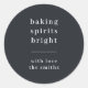 Stilvolle moderne Backgeschenke-Etiketten mit klassischer Typografie zitieren "Backgeister hell" mit Trennlinie und Familienname in Weiß. Das Design zeichnet sich durch eine bläuliche schwarze Holzkohle-Farbe aus. Der Gruß und der Name lassen sich einfach für ein einzigartiges Design wie Ihre spezielle Familie anpassen. Ein trendiges, minimalistisches und zeitgenössisches Design, das sich in dieser Ferienzeit auszeichnet!