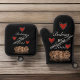 Wir backen gerne für unsere Familien. Wir haben viel Liebe in unser Backen gesteckt. Deshalb schmeckt unser Essen so gut. Dieser Ofenhalter und Mitt drücken das aus. Bei diesem Design handelt es sich um ein gedrucktes Bild mit Acrylfarbe für die roten Herzen, Button rollen und Kekse.