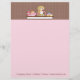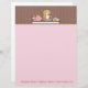 Geschäftsbriefkopf für Bäcker oder Bäckerei. Ausrüstungsbeschreibungs-Mädchenbackenkleine kuchen auf Schokolade und Rosa punktierten Hintergrund. Einfach kommt besonders anzufertigen und mit Ihrer Wahl des Papiers und beendet.
