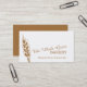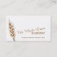 Einfaches modernes Blatt, Stiel, Samenkopf der grafischen Bäckerei des Weizens/der Bäcker-Visitenkarte im weißen und goldenen Braun. Vervollkommnen Sie für Handwerkerbäcker, Spezialistenbäckerei und andere kochende und backende Fachleute. Personifizieren Sie mit Ihren Firmennamen-, Dienstleistungs-, Adressen- und Kontaktdetails. Entwurf und Grafik durch Sarah Trett.