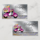 Kuchengeschäftskarte mit super niedlicher Rollerfrau, zuckerhaltiger süßer Glitterzuckerglasur und hübscher Herzsüßigkeit.