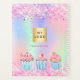 Ein trendiger holografischer, rätselhafter Hintergrund in rosa, lila, mint grün. Dekoriert mit Konfetti in Rosa und 3 Kuchen. Personalisieren Sie Ihr Firmenlogo, Text, Jahr und Ihren Firmennamen und fügen Sie es hinzu. Der persönliche Name wird mit einem modernen handgeschriebenen Stilskript geschrieben.