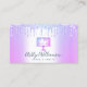 Mit diesen eleganten, raffinierten, einfachen und modernen Visitenkarten präsentieren Sie Ihren Kunden Ihr bestes Selbst. Ein funkelnd, lila blauer Kuchen, handgeschriebene Typografie und Glitzer-Tropfen überlagern ein Imitat metallisch lila blau ombre Hintergrund. Personalisieren Sie mit Ihrem vollen Namen und Geschäft auf der Vorderseite. Füllen Sie auf der Rückseite Ihre Telefonnummern, Adresse, E-Mail, Website und Social-Media-Konten aus. Macht eine schicke, berufliche und stilvolle Aussage, wo immer Sie hingehen. Geben Sie einfach Ihren Namen, Ihren Firmennamen und alle Ihre zusätzlichen Informationen in den Bereich "Personalisieren Sie diese Vorlage" ein, und Sie können diese Visitenkarte ganz einfach personalisieren. Bitte schicken Sie mir eine Nachricht mit Fragen oder Wünschen.