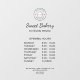 Begrüßen Sie Kunden stilvoll mit diesem individuell gestaltbaren Fensteraufkleber für Bäckereien, der Ihre Öffnungszeiten und Ihr Logo zeigt. Perfekt für Schaufenster oder Glastüren, ist dieser einfache Aufkleber darauf ausgelegt, Ihren Geschäftsnahmen, Ihre Öffnungszeiten und Kontaktdaten klar darzustellen. Fügen Sie Ihr eigenes Logo hinzu und personalisieren Sie den Text, um ihn an Ihre Marke anzupassen. Ideal für Bäckereien, Cafés und kleine Unternehmen, die ein gepflegtes, professionelles Erscheinungsbild schaffen und Kunden auf dem Laufenden halten möchten.