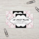 Elegante rosa und weiße Damast-Geschäfts-Karte mit schwarzem Streifen und wunderlichen Umbauentwurfs- und -Schriftartwahlen, macht dieses eine perfekte Karte für Bäckerei, kleinen Kuchen, Kuchen oder chocolatier Geschäfte. Entwurf durch Elke Clarke© 2011.