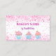 Ein weißer Hintergrund. Dekoriert mit rosafarbenen Konfetti und Kuchen. Personalisieren und fügen Sie Ihren Namen und Text auf der Vorderseite. Rosa und lila Text. Zurück: Vorlagen für Ihren Namen, Titel, Telefonnummer, E-Mail- und Website-Adresse, Ihren eigenen QR-Code für Ihre Website oder Ihr Social-Media-Konto. Facebook und Instagram Icons/account.