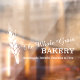 Einfache moderne Klinge, Stiel, Samen Kopf von Weizen Grafik Bäckerei / Bäcker des Cafés weiß auf klaren Fenster Verkleidung. Ideal für Bäcker, Bäckereispezialisten und andere professionelle Küchen- und Backfachleute, die an die breite Öffentlichkeit verkaufen. Personalisieren Sie mit Ihrem Firmennamen, Business Services. Andere passende Artikel sind auf Anfrage erhältlich. Original Weizengrafik und Design von Sarah Trett für www.mylittleeden.com