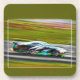 Ein strahlendes Rennwagen spuckt Feuer, wenn es das Ende der Straße erreicht.