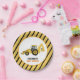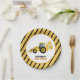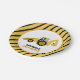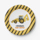 Das Plate hat ein Design-Thema schwarz und gelb Streifen mit einem orangen Rand und einem gelben Hintergrund in der Mitte. Passen Sie den Text mit Ihren eigenen Daten an, oder löschen Sie, um ihn ohne Text zu verwenden. Ideal für ein Bauthema Babydusche oder Geburtstagsparty!