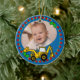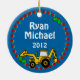 Brillante Backhoe-Weihnachtsrahmen aus dem Foto für "das erste Kind" oder für jedes Kinderalter. Passen Sie den Text auf der Rückseite des Ornaments an, um zu sagen, was Sie wollen.